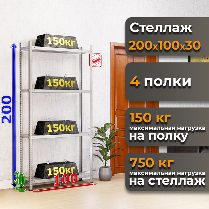 Металлический стеллаж 200х100х30 серии MS Strong с 4 полками идеально подходит для офиса. Прочная конструкция, универсальный дизайн и практичность делают его лучшим выбором для организации пространства и хранения документов, папок и офисных принадлежностей.